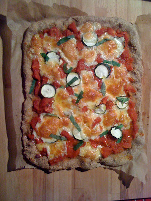 + Cover the bowl with a damp tea towel and place in a warm spot (on top of the fridge or hot water heater, in front of a radiator). Allow the dough to rise for 2 hours (longer is ok too. I left it once for 4 hours and it was still delicious. Not a good idea in the summer though. You can also let it rise and then put it in the fridge overnight. Just let it return to room temperature before continuing).+ Heat the oven to 480-530F (250-275C). Grease a large baking tray. Heavily flour counter or cutting board.